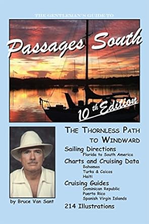 This is the Tenth and last Edition of the popular directions for sailing south to the Bahamas and the Caribbean.For more than twenty years Van Sant repeatedly surveyed nearly 200 anchorages between Florida and South America. He racked up well over 80,000 sea miles doing it, mostly single-handed. Why? You’ll find some interesting answers in his book of stories, Margarita Cat, but essentially, he did it because he liked doing it.Sailing up and down the chain of islands so much and so often, he got to looking for shorter and easier ways to navigate between each link in the chain, and he kept refining detailed nav plans for every leg. He has systematically taken the thorns out of the route they used to call the Thorny Path. For example, he exploits the calming effects on wind and sea which result from land cooling on each side of an inter-island passage. Applying his many methods, both sail and power can make safe, comfortable and pleasant progress even against normally impenetrable trade winds and seas. Passages South offers an illustrated manual of instruction for specific passages and harbors down islands as well as a cruising guide for the Greater Antilles islands of Hispaniola and Puerto Rico. It has sailed aboard tens of thousands of boats passaging between the Americas. It should sail with you too.