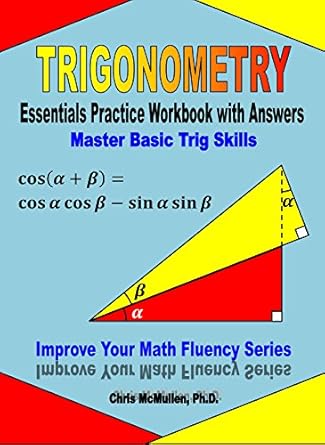 EDITIONS: Originally published as a paperback workbook, this print replica digital format is designed for value pricing (compared to the print edition) and the convenience of electronic storage. Pinch-and-zoom allow for close-up reading. Problems can be worked out on scratch paper. Also available in paperback.WHAT TO EXPECT: This is a workbook designed to offer plenty of practice with essential skills. It is not a textbook designed to teach trigonometry, but a workbook designed to supplement a student’s instruction in trigonometry. Examples and a brief description of the concepts are included to serve as a quick refresher and a guide. If you need more instruction, you should use this workbook in combination with a textbook. The last chapter involves applications of trig identities, which is a challenging topic that will mostly interest more advanced students. A few chapters are intended to help students memorize the trig functions of common angles like 30, 150, or 315 degrees, which will be especially useful for students who may take exams without a calculator (that’s the case with the MCAT and many math and science courses). There may be more practice than many students need, which is much better than having too little practice. Any extra pages may be helpful for teachers or parents with multiple children.DESCRIPTION: This Trigonometry Essentials Practice Workbook with Answers provides ample practice for developing fluency in very fundamental trigonometry skills. Every problem can be answered without a calculator, which is very helpful for students who aren’t allowed to use a calculator. This is the case in some trig and physics courses, as well as some standardized exams (like the MCAT).CONTENTS: This workbook is conveniently divided up into 11 chapters so that students can focus on one trigonometry skill at a time. Skills include the following:converting between degrees and radians;expressing sine, cosine, tangent, secant, cosecant, and cotangent as fractions by looking at right triangles;solving for unknown sides and angles in 45°-45°-90° and 30°-60°-90° right triangles;determining the sine, cosine, tangent, secant, cosecant, and cotangent of multiples of 30° and 45° up to 360° (working with both degrees and radians);practice finding the reference angle for angles in Quadrants II, III, and IV;finding the inverse trig functions;applying the law of sines and the law of cosines to solve for unknown sides and angles in acute and obtuse triangles;solving problems with trig identities (like the angle sum and difference formulas);and solving algebraic equations that feature basic trig functions.EXAMPLES: Each section begins with a few pages of instructions for how to solve the problems followed by some examples. These examples should serve as a useful guide until students are able to solve the problems independently.ANSWERS: Answers to exercises are tabulated at the back of the book. This helps students develop confidence and ensures that students practice correct techniques, rather than practice making mistakes.PHOTOCOPIES: The copyright notice permits parents/teachers who purchase one copy or borrow one copy from a library to make photocopies for their own children/students only. This is very convenient if you have multiple children/students or if a child/student needs additional practice.INTRODUCTION: An introduction describes how parents and teachers can help students make the most of this workbook. Students are encouraged to time and score each page. In this way, they can try to have fun improving on their records, which can help lend them confidence in their math skills.