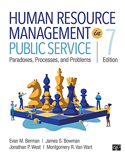 Human Resource Management in Public Service: Paradoxes, Processes, and Problems offers provocative and thorough coverage of the complex issues faced by employees and managers in the public sector, including managing under tight budgets with increasing costs, hiring freezes, contracting out, and the politicization of the civil service. Continuing the award-winning tradition of previous editions, authors Evan M. Berman, James S. Bowman, Jonathan P. West, and Montgomery R. Van Wart encourage active learning through various skill-building exercises and a mixture of individual, group, and in-class tasks. The Seventh Edition includes new examples on how COVID-19 has disrupted the workplace, equity and racial discord, organizational diversity, employee engagement and motivation, leadership development training, work-life balance, gender-based inequities, behavioral biases in appraisal, and unionization trends.