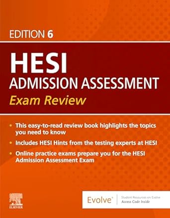 Taking the HESI Admission Assessment (A2) Exam is the first step on the journey to becoming a successful healthcare professional. Be prepared to pass the exam with the most up-to-date HESI Admission Assessment Exam Review, 6th Edition! From the testing experts at HESI, this user-friendly guide walks you through the topics and question types found on admission exams, including math, reading comprehension, vocabulary, grammar, biology, chemistry, and anatomy and physiology. The guide includes hundreds of sample questions, as well as step-by-step explanations, illustrations, and comprehensive practice exams to help you review various subject areas and improve test-taking skills. Plus, the pre-test and post-test help identify your specific weak areas so study time can be focused where it's needed most. - NEW! Updated, thoroughly reviewed content helps you prepare for the HESI Admission Assessment Exam. - NEW! Added rationales to the comprehensive practice exams on Evolve provide step-by-step guidance to help you learn from your answer choices. - Comprehensive practice exams with over 200 questions on the Evolve companion website. - Sample questions in all sections prepare you for the questions you will find on the A2 Exam. - Step-by-step explanations and sample problems in the math section show you how to work through each and know how to answer. - Expanded HESI Hints boxes offer valuable test-taking tips, as well as rationales, suggestions, examples, and reminders for specific topics. - A 25-question pre-test at the beginning of the text helps assess areas of strength and weakness before using the text. - A 50-question comprehensive post-test at the back of the text includes rationales for correct and incorrect answers.