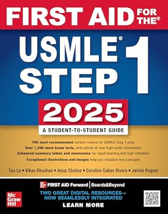 The time-tested, most popular board prep resource—updated to reflect the newest Step 1 examFirst Aid for the USMLE Step 1 is a veritable blueprint for preparing for this critical exam, revealing all the content you will encounter on test day. This unmatched text is written by carefully chosen students who excelled on the Step 1 exam and reviewed by top faculty—ensuring the content is relevant, high-yield, and accurate. The book is organized and formatted in ways that help you easily hone in on the most important content.The new edition of First Aid for the USMLE Step 1 is filled with 1,000 color clinical images, including more depicting diverse patients; 1,300+ high-yield facts and mnemonics, organized by basic principles and organ system; and invaluable test-taking advice. There’s a reason for the longstanding success of First Aid for the USMLE Step 1. Once you open the 2025 edition, you’ll instantly understand why it’s a resource you can’t be without!