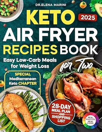 🌱🥘 Your shortcut to keto success: air fryer recipes that are quick, flavorful, and carb-free with the Keto Air Fryer Cookbook 2025! 🍖🌱Craving golden, crunchy meals that actually fit your low-carb lifestyle?This ultimate Keto Air Fryer Book brings you 100+ recipes, a 28-Day Meal Plan with shopping lists, and even a special Mediterranean Keto chapter for extra variety and flavor.With step-by-step recipes designed for two, full-color photos, and easy guidance, you’ll enjoy air fryer meals while staying perfectly on track. Perfectly designed for modern kitchens, this air fryer keto cookbook offers more than just recipes.❓ Why This is the Ultimate Keto Diet Air Fryer Cookbook📘 Beginner-Friendly GuideNo complicated techniques or guesswork — just step-by-step help. Whether you’re new to keto or looking to refresh your low-carb journey, this air fryer recipes cookbook keto makes cooking effortless and enjoyable.🍽 Easy Keto Recipes for Air FryerEach recipe is low-carb, perfectly portioned, and designed for two people — no waste. This keto air fryer cookbook for two ensures you can enjoy crispy, flavorful meals without excess carbs or wasted ingredients.🗓 Structured 28-Day Keto Meal PlanStay organized and motivated with a simple plan that guides you day by day. This Keto for Air Fryer Cookbook and meal plan removes the stress of planning while keeping your results on track.🛒 Includes Weekly Shopping ListsSave time and money with organized lists that match your meal plan. This keto air fryer recipes cookbook makes prep simple, so you can focus on cooking and enjoying.🐟 Features a Special Mediterranean Keto ChapterFrom juicy steaks to tender salmon, this keto cookbook for air fryer highlights protein-rich favorites that deliver both flavor and nutrition.📷 Full-Color Photos with Every Air Fryer Keto RecipeSee precisely what you’re cooking. Each dish in this keto air fryer recipe book is paired with a vibrant photo, helping you feel confident and inspired in the kitchen.💚 Healthy, Quick, and Guilt-FreeWith minimal oil and maximum taste, the Air Fryer Cookbook Keto proves that you don’t need to sacrifice flavor for results. Enjoy your favorite “fried” foods with a healthy, low-carb twist.This book includes a downloadable 28-Day Meal Plan and Shopping List via QR Code — keeping you organized, motivated, and ready with effortless prep and printing. Whether you’re new to keto, exploring air fryer cooking, or looking for quick, satisfying low-carb meals, the Keto Air Fryer Cookbook 2025 provides everything you need for success.👉 Ready to enjoy crispy, golden, keto-friendly meals without the guilt?Scroll Up, Click “Buy Now” and Start Cooking with the Air Fryer Keto Cookbook Today!