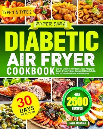 Super Easy Diabetic Air Fryer Cookbook: Diabetic Cookbook with Quick & Tasty Recipes for Type 1 & Type 2, Newly Diagnosed | Ultimate Guide with a 30-Day Meal Plan & Nutritional Data
